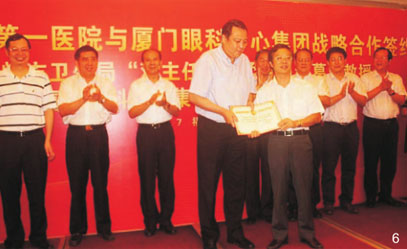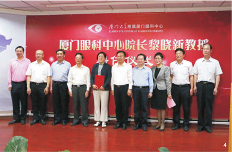 - 聘請(qǐng)黎曉新教授為廈門大學(xué)附屬?gòu)B門眼科中心院長(zhǎng)。廈門市常委、組織部長(zhǎng)陳秋雄(現(xiàn)為廈門市委副書記)頒布聘書,廈門大學(xué)黨委書記張彥等領(lǐng)導(dǎo)出席見證。