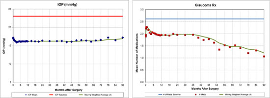 患者術(shù)前平均服藥2.5種,術(shù)后逐漸減少,術(shù)后降眼壓藥種類減少25-43%,大大提高了患者生活質(zhì)量。