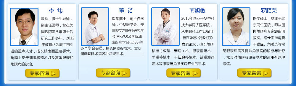 醫(yī)學碩士,眼表及角膜??聘敝魅危瑤煆难劭平绻こ淘涸菏?、學者謝立信教授,臨床經(jīng)驗豐富。曾獲“人工晶體植入手術1000例成就獎”。
