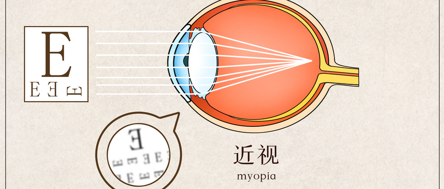 近視是先天或后天因素(如用眼不衛(wèi)生),使眼球的前后徑(眼軸)變長,平行光線進入眼球后,聚焦在視網(wǎng)膜前而無法清晰成像,表現(xiàn)為遠視力下降,近視力良好,即看近清晰、看遠不清晰。眼軸每增加1mm,近視度數(shù)增加300度左右,這時候就需要佩戴眼鏡矯正或進行屈光手術治療。