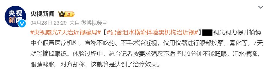 近日,某視光視力提升摘鏡中心”的機(jī)構(gòu)自稱在全國400多個城市有1600多家門店,宣稱不吃藥、不手術(shù)治近視,僅僅用他們研制的“神藥”“神秘儀器”進(jìn)行眼部的按摩、涂抹、霧化等,7天就能摘掉眼鏡。