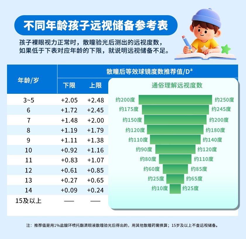 比如,如果你的孩子6歲,遠(yuǎn)視儲備只剩下50度,甚至0度,那就是紅色警報(bào)!