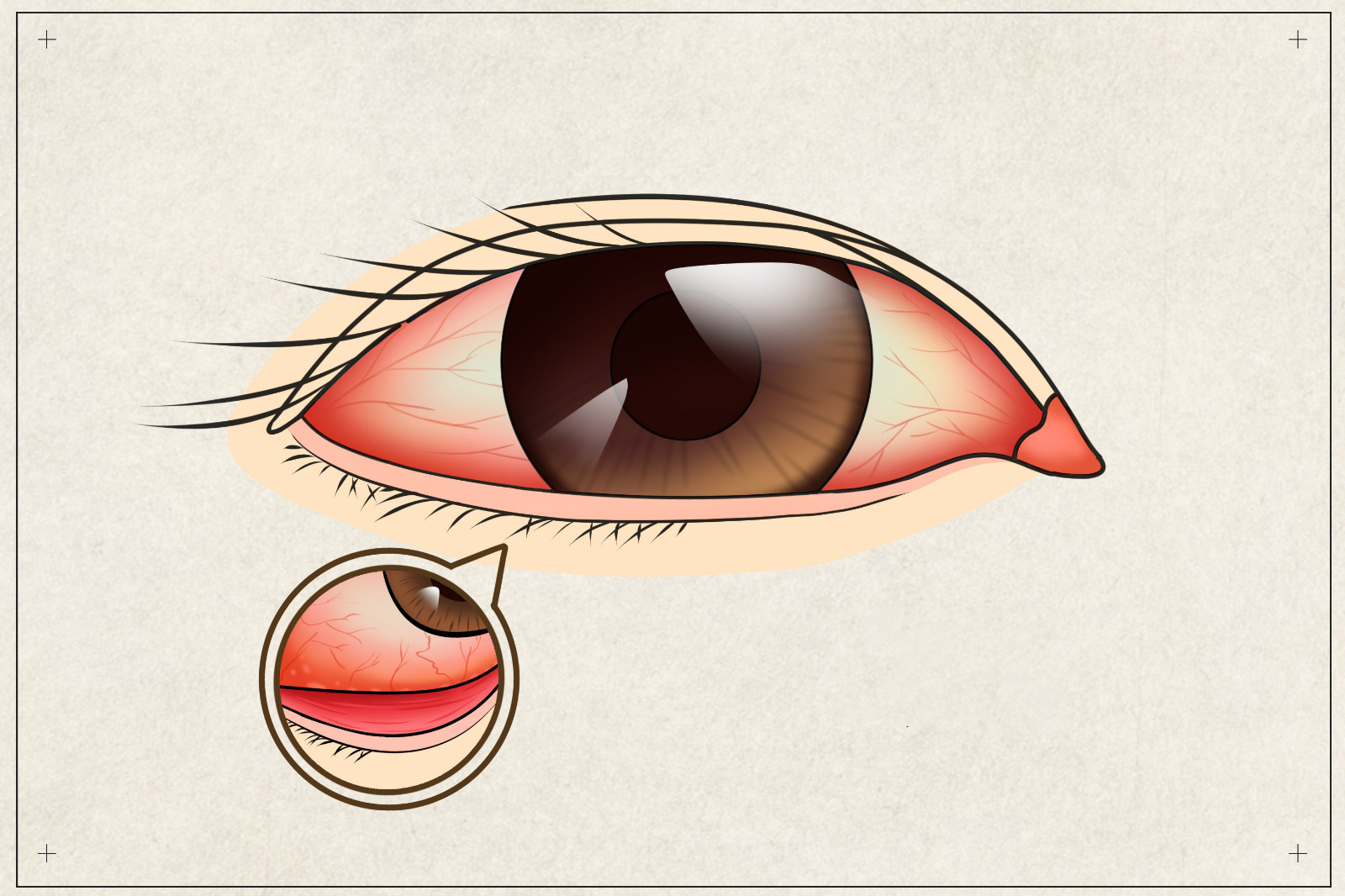 結(jié)膜炎會表現(xiàn)為結(jié)膜表層血管的擴張,可以呈彌散性充血,也可表現(xiàn)為局部充血,充血的顏色多鮮紅,愈向穹隆區(qū)充血愈明顯,向角膜緣部充血減輕。不伴明顯水腫時,推動結(jié)膜血管可隨之移動,并無觸痛。結(jié)膜表面滴用0.1%腎上腺素后,結(jié)膜血管充血明顯消失。當結(jié)膜炎癥同時累及角膜或鞏膜或筋膜組織時,也可表現(xiàn)為結(jié)膜充血與睫狀充血同時存在,臨床上稱為混合充血。