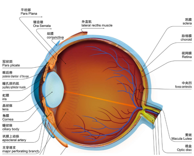 視網(wǎng)膜位于眼球后部,眼球壁的內(nèi)層。如果我們把眼睛看作是一部照相機(jī),那么,視網(wǎng)膜就是照相機(jī)的底片,專門負(fù)責(zé)感光成像。當(dāng)我們看東西時(shí),物體的影像通過屈光系統(tǒng),落在視網(wǎng)膜上。視網(wǎng)膜是一層非常薄的膜,但它還可以分為十層。其中,靠內(nèi)側(cè)的九層合起來,叫做神經(jīng)上皮層,外面一層叫色素上皮層。我們所說的視網(wǎng)膜脫落,并非是整個(gè)視網(wǎng)膜掉下來,而是視網(wǎng)膜內(nèi)九層與外一層分道揚(yáng)鑣了。